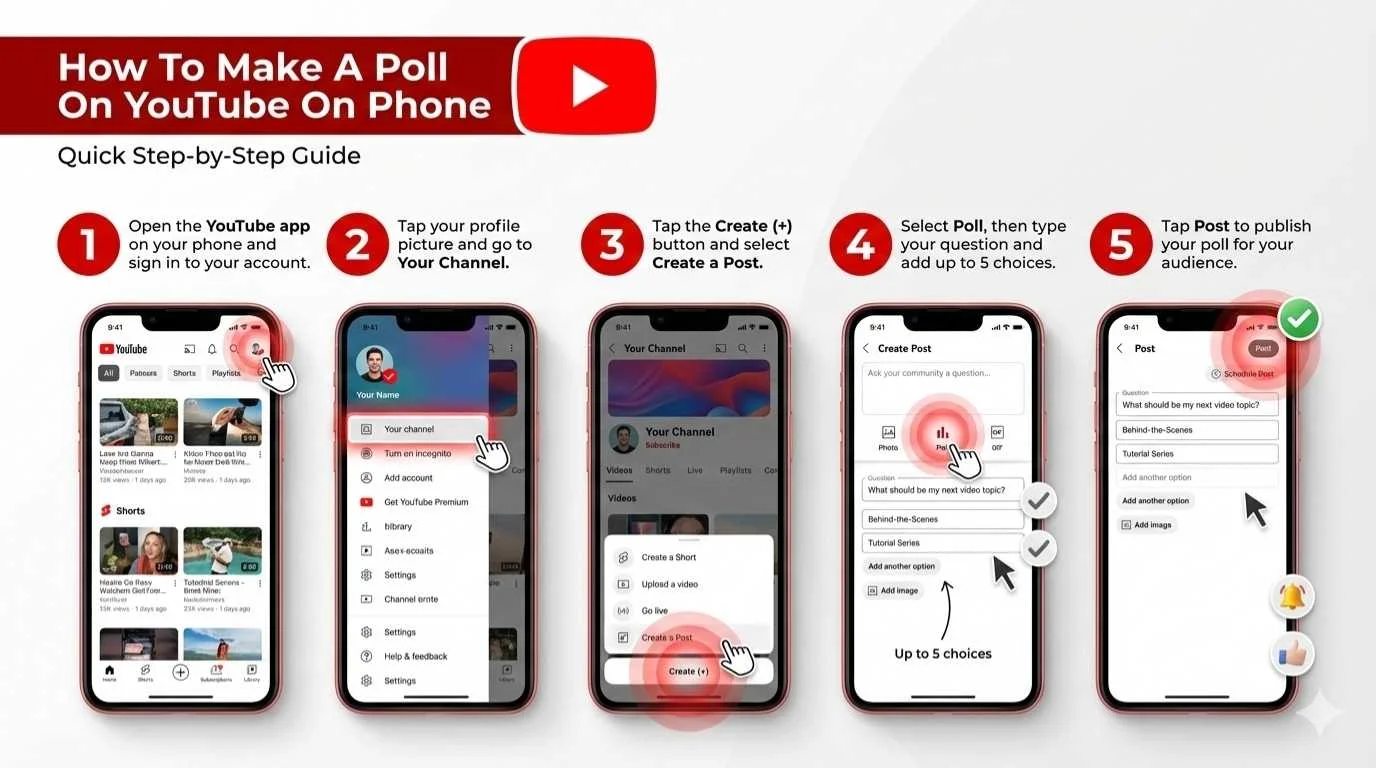 Most people use the mobile app to manage their channels. Here is how to post a poll on youtube using your phone.